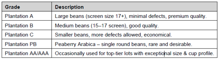 1. Arabica - Plantation Grades (Washed)